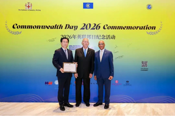 牙买加前总理布鲁斯·戈尔丁阁下、牙买加驻华大使亚瑟·威廉姆斯先生与东方紫酒业董事长高庆国博士 合影